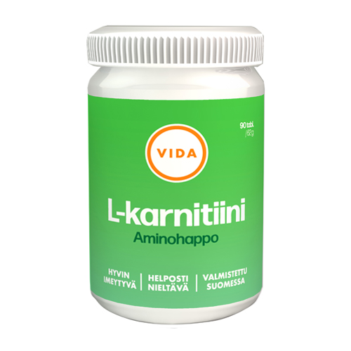 Vida L-karniitiini valmiste on hyvin imeytyvää L-karnitiinitartraattia. Karnitiini on aminohappo, joka muun muassa kuljettaa solun sisällä rasvahappoja mitokondrioihin pilkottaviksi energiaksi.