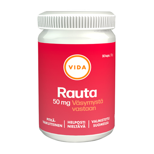 Vida rautavalmisteessa rauta on vatsaystävällisenä ferrofumaraattina. Helposti nieltävä kasviperäinen depotkapseli sulaa suolistossa hitaasti ja vapauttaa rautaa asteittain, jolloin se ei ärsytä ruoansulatuskanavan limakalvoa. Valmiste sisältää runsaasti raudan imeytymistä edistävää C-vitamiinia.